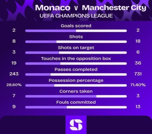 摩纳哥2比2曼城