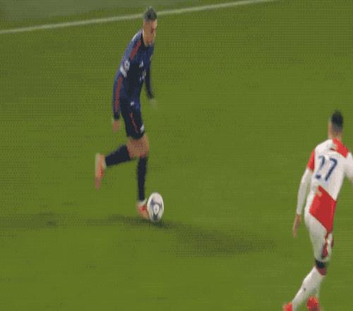 第35分钟,戴上队长袖标的萨卡操刀主罚,球速快角度刁,门将判断正确也无济于事,枪手取得领先,这也是萨卡本赛季欧冠的第2个进球。